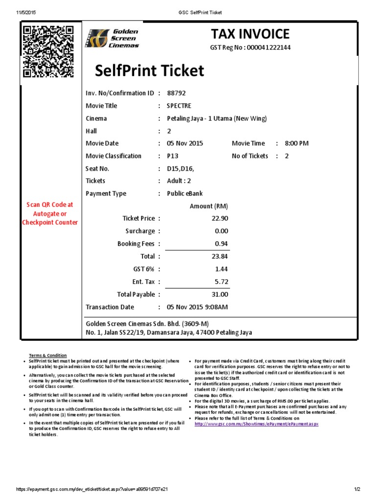 Gsc Now Available Selfprint Tickets With Gsc E Payment No More Queue No Ticket Collection From Ticketing Counter Available At Gsc 1 Utama And Gsc Tropicana City Mall As Of Today